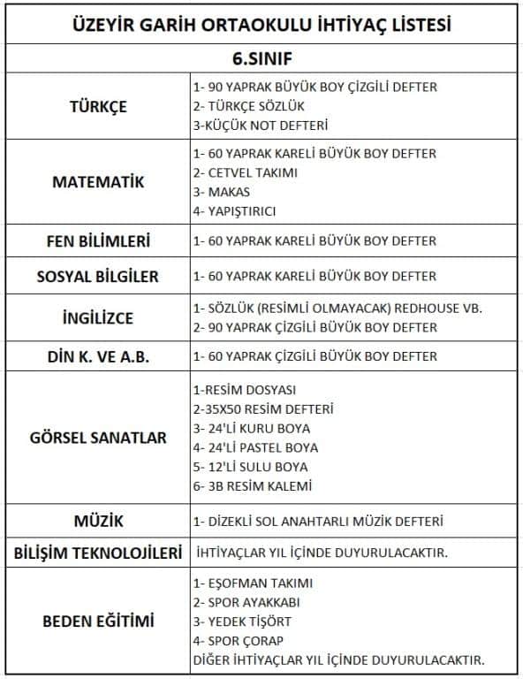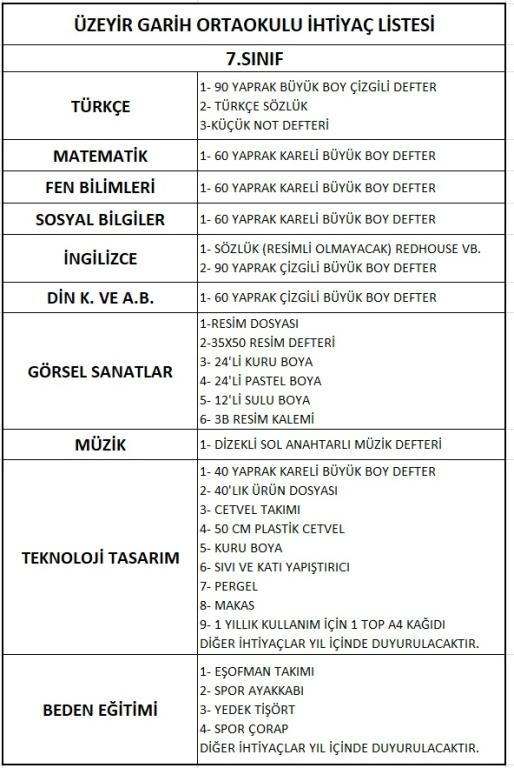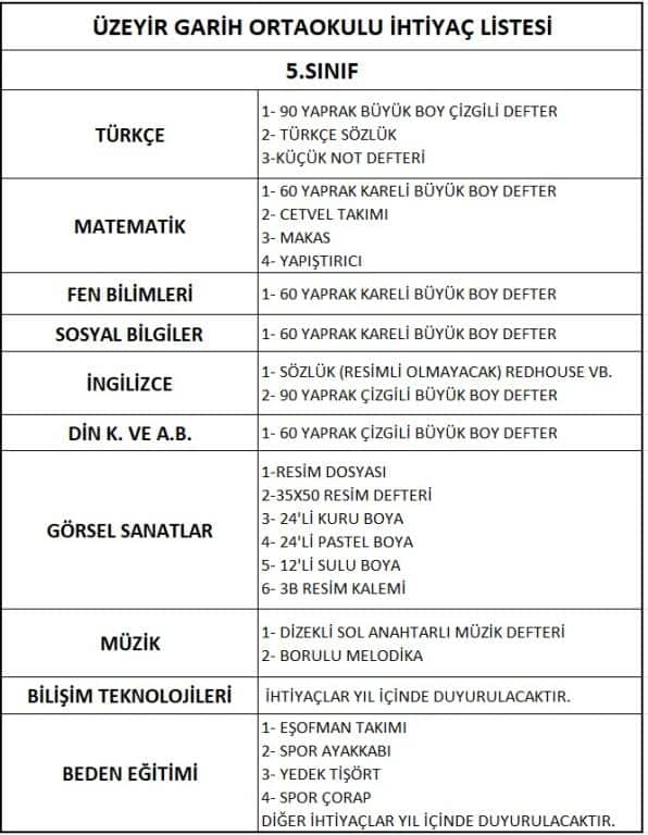 2025/2026 Eğitim Yılı İhtiyaç Listesi
